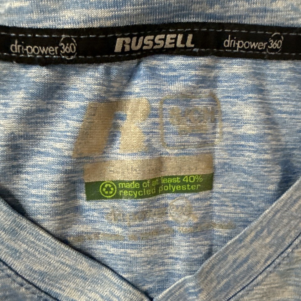 Russell Dri-Power 360 T-Shirt Tee (S) Small Light Blue Heather V-neck Men. Condition is Pre-owned - Good. Shipped with Standard Envelope for eligible items up to $20.