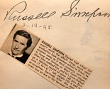 - RUSSELL SIMPSON 1945 VINTAGE Autograph SIGNED 4 x 4 PAPER CUT SIGNATURE RARE