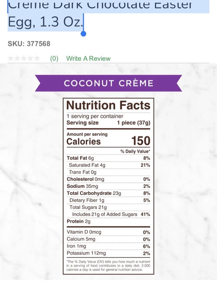 - Russell Stover Easter Coconut Crème Dark Chocolate Easter Egg, 1.3 Oz. See Below
