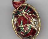 Russian Faberge Egg Pendant Red & Green Enamel Finish, Leaf Like & Gems, Gold...