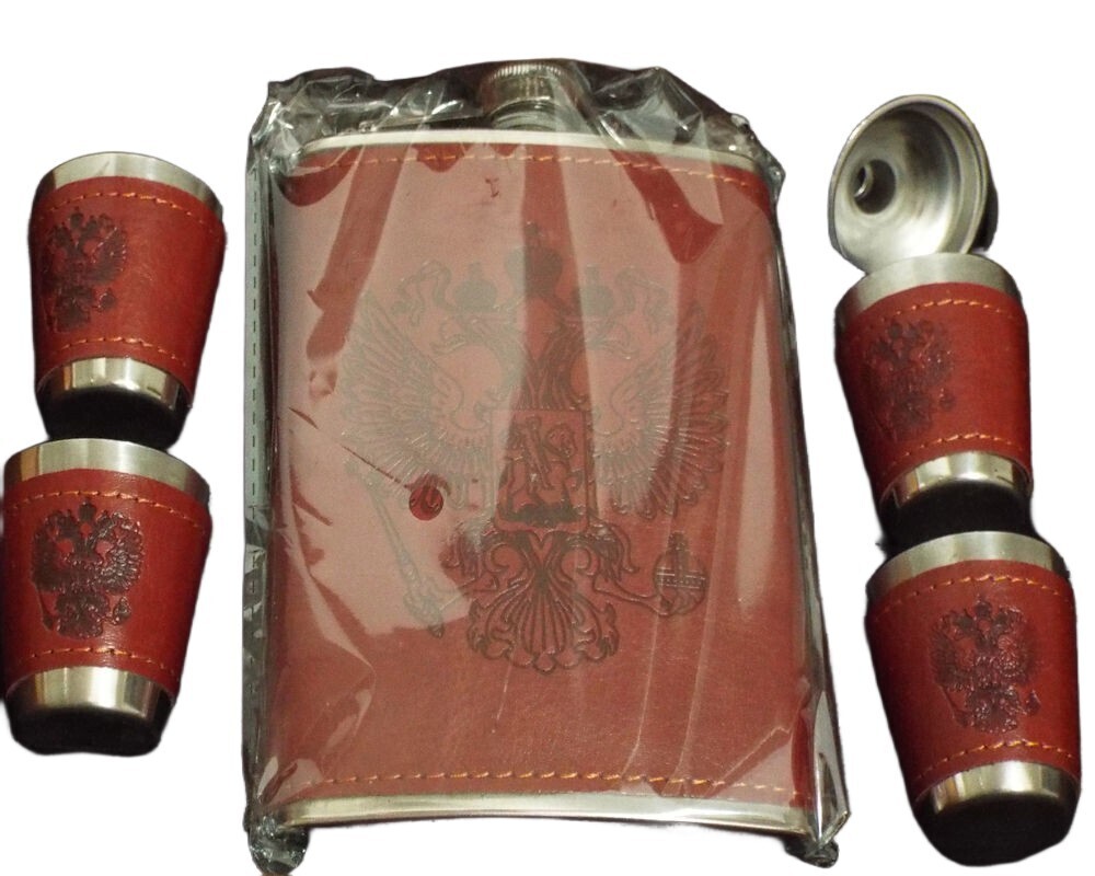 The flask and cups are inscribed with the double eagle insignia. The board does have a minor design flaw in the the middle of the set in the wood its not cracked just a minor scratch so a discount is in the price. Size of the board is 9.5 X 7 inches (1 inch =2.54 cm).