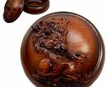 ? Look for a rustic and exotic jewelry holder or other knick knack holder? This rounded faux wood resin box will do the job perfectly!!! On its surface is a carving of a wild buffalo with his mate in a nature setting.