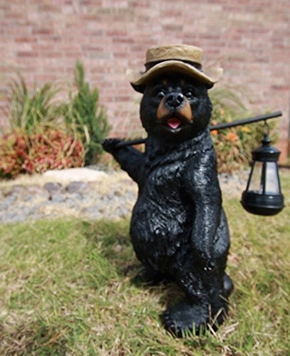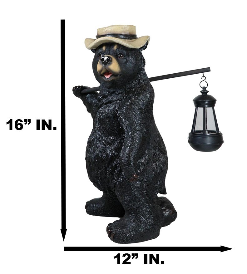 - Rustic Forest Black Bear Outdoor Hiking Figurine W/ Solar LED Light Lantern Lamp