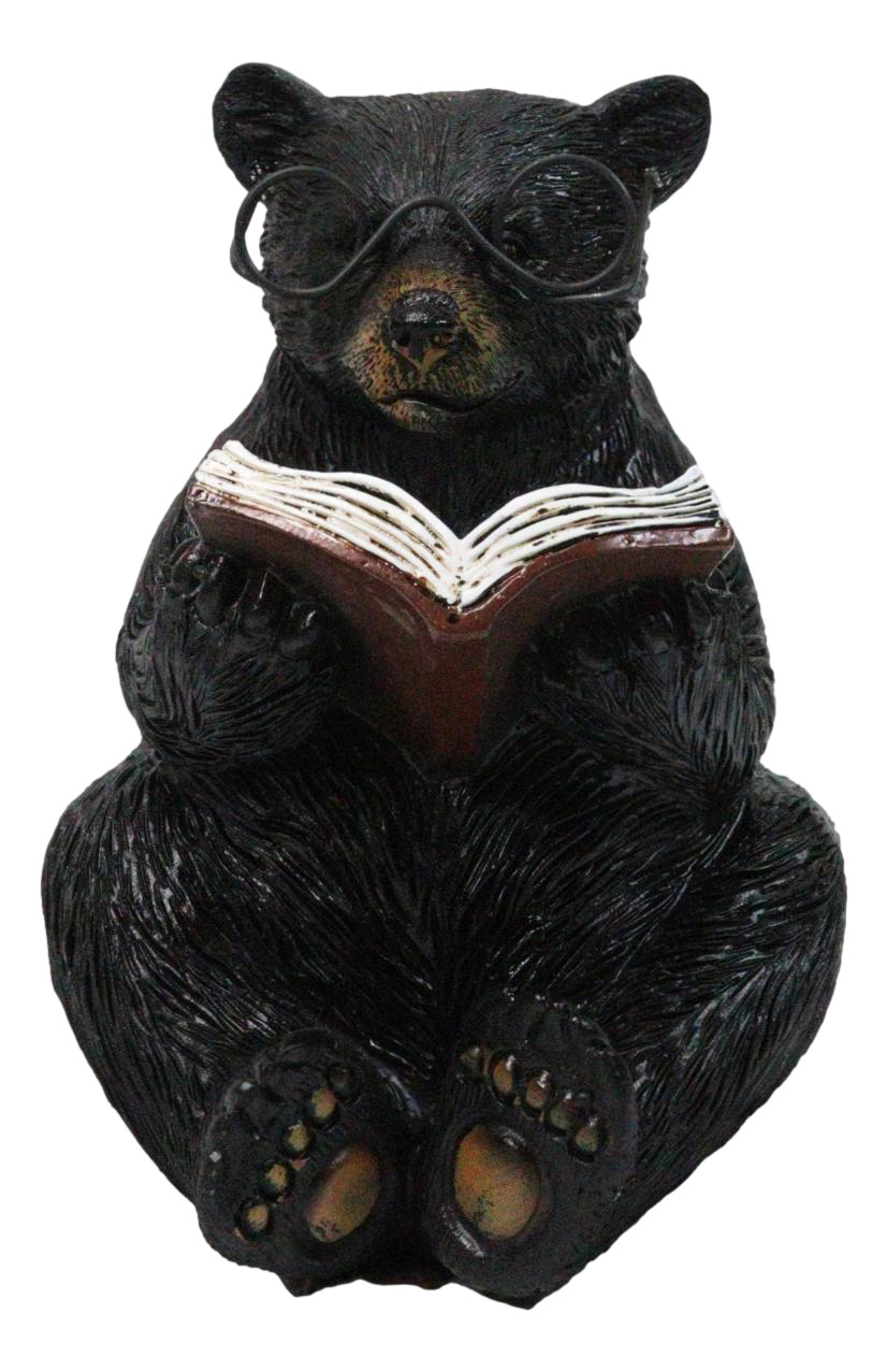 - Rustic Forest Western Bookworm Black Bear with Glasses Reading Book Figurine