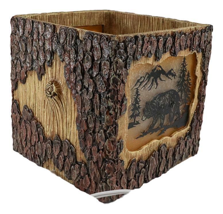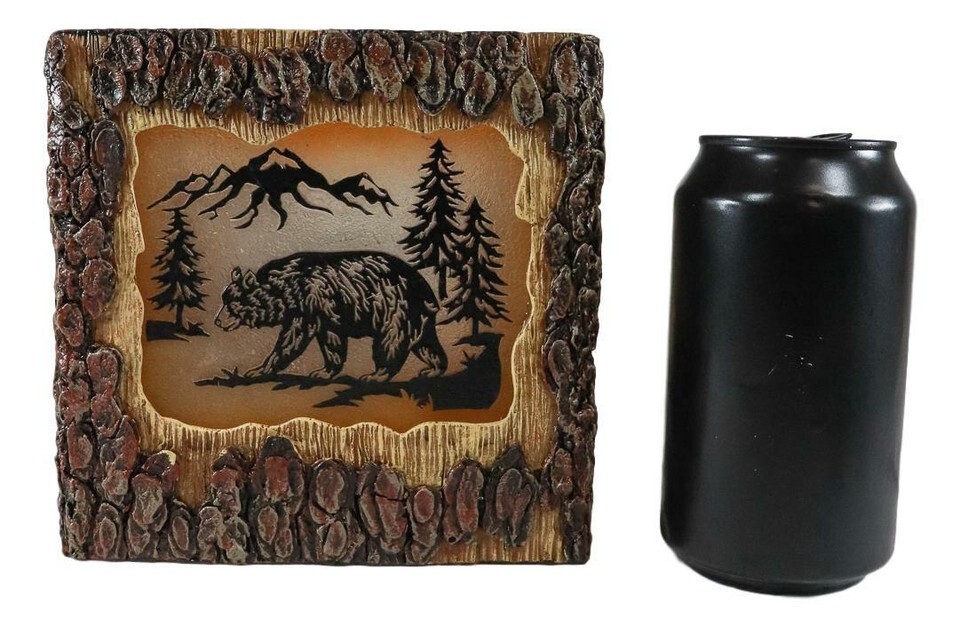 - Rustic Pine Forest Black Bear Faux Carved Wood Bark Night Light Lamp Sculpture