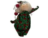 - Rustic Primitive Christmas Angel Doll Green Holly Dress White Hair Decor