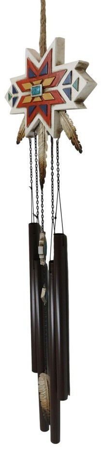 ? This Southwestern Wind Chime is made of resin and painted aluminum, hand painted and polished individually.