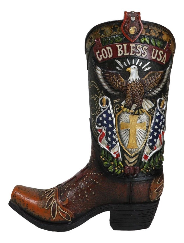 - Rustic Western American Flag God Bless USA Eagle Seal Cowboy Boot Vase Planter