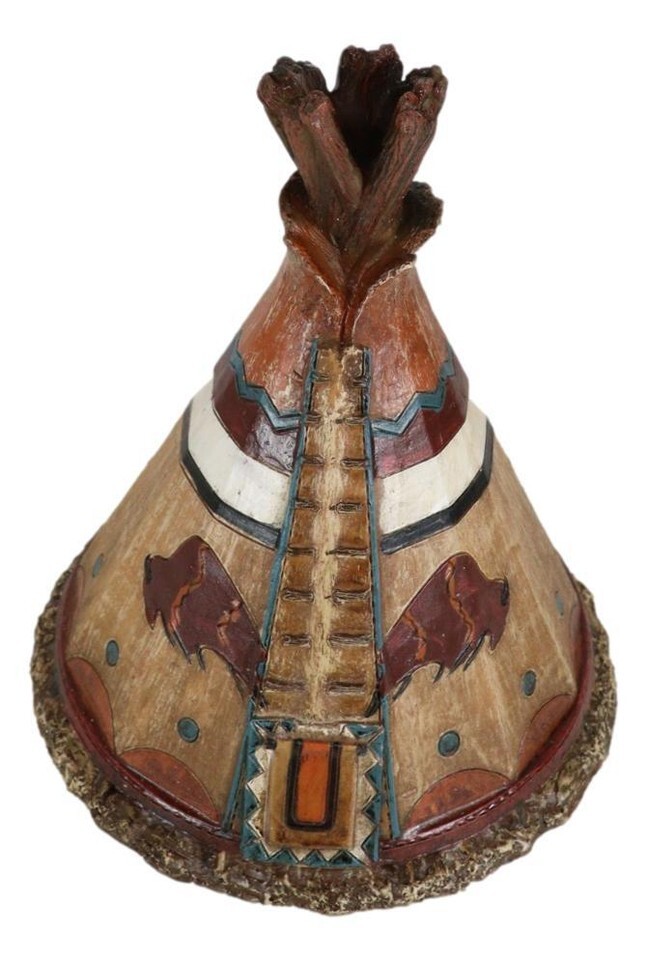 - Rustic Western Bison Tribal Indian Teepee Hut Money Coin Savings Bank Figurine