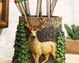 Ebros Rustic Western Buck Stag Deer By Green Forest Trees Stationery Pen Brush Holder