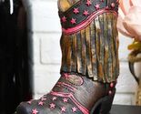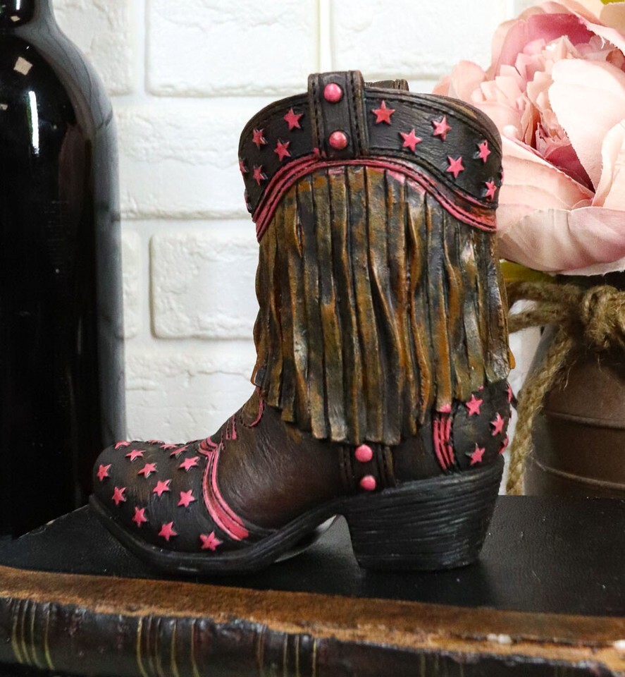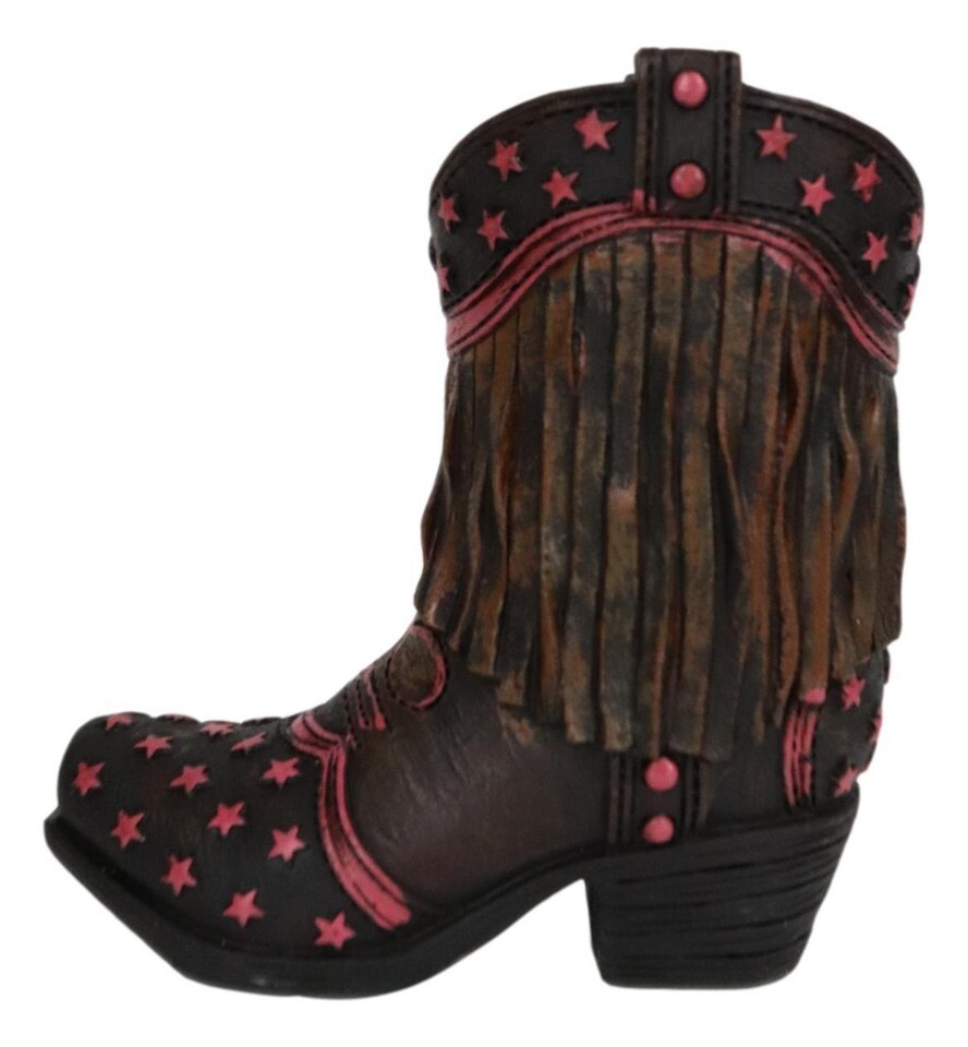 - Rustic Western Cowboy Pink Stars Fringe Brown Faux Leather Boot Pen Holder Decor