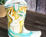 - Rustic Western Elk Stag Deer Buck Antlers Feathers Cowboy Boot Money Piggy Bank