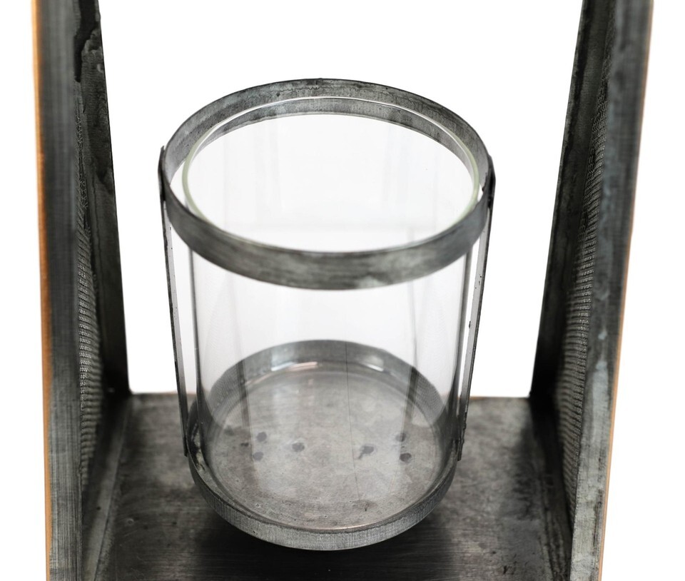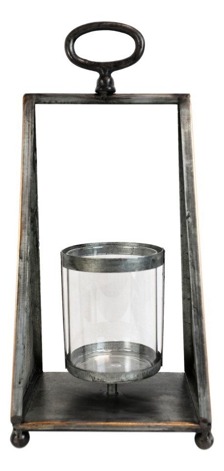 - Rustic Western Farmhouse Galvanized Metal Pillar Candleholder Trapezium Lantern