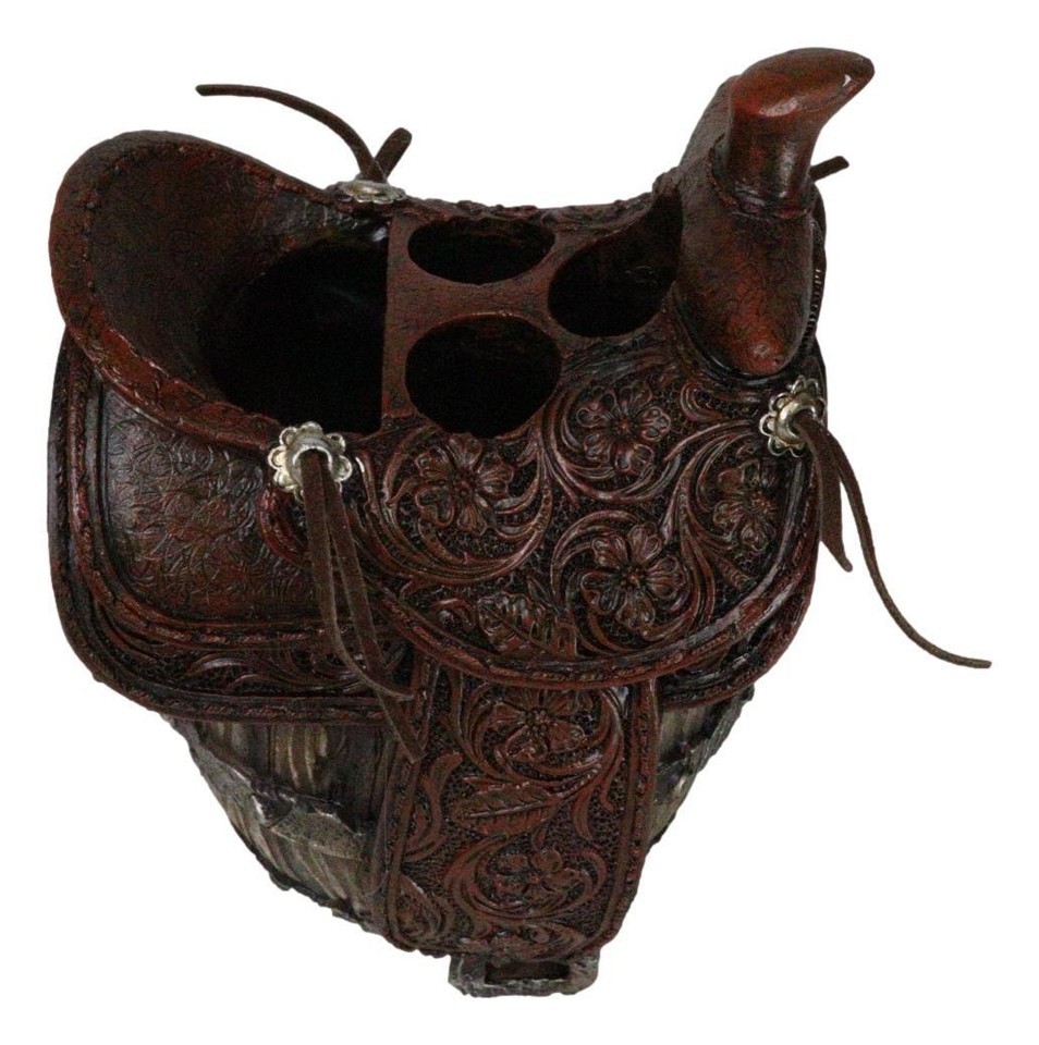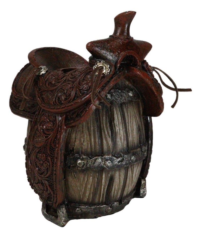 - Rustic Western Faux Leather Cowboy Horse Saddle On Barrel Toothbrush Holder