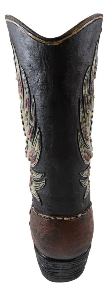 - Rustic Western Faux Leather Patriotic Tribal Eagle Cowboy Boot Vase Figurine