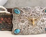- Rustic Western Longhorn Cow Skull Concho Tooled Leather Decorative Trinket Box