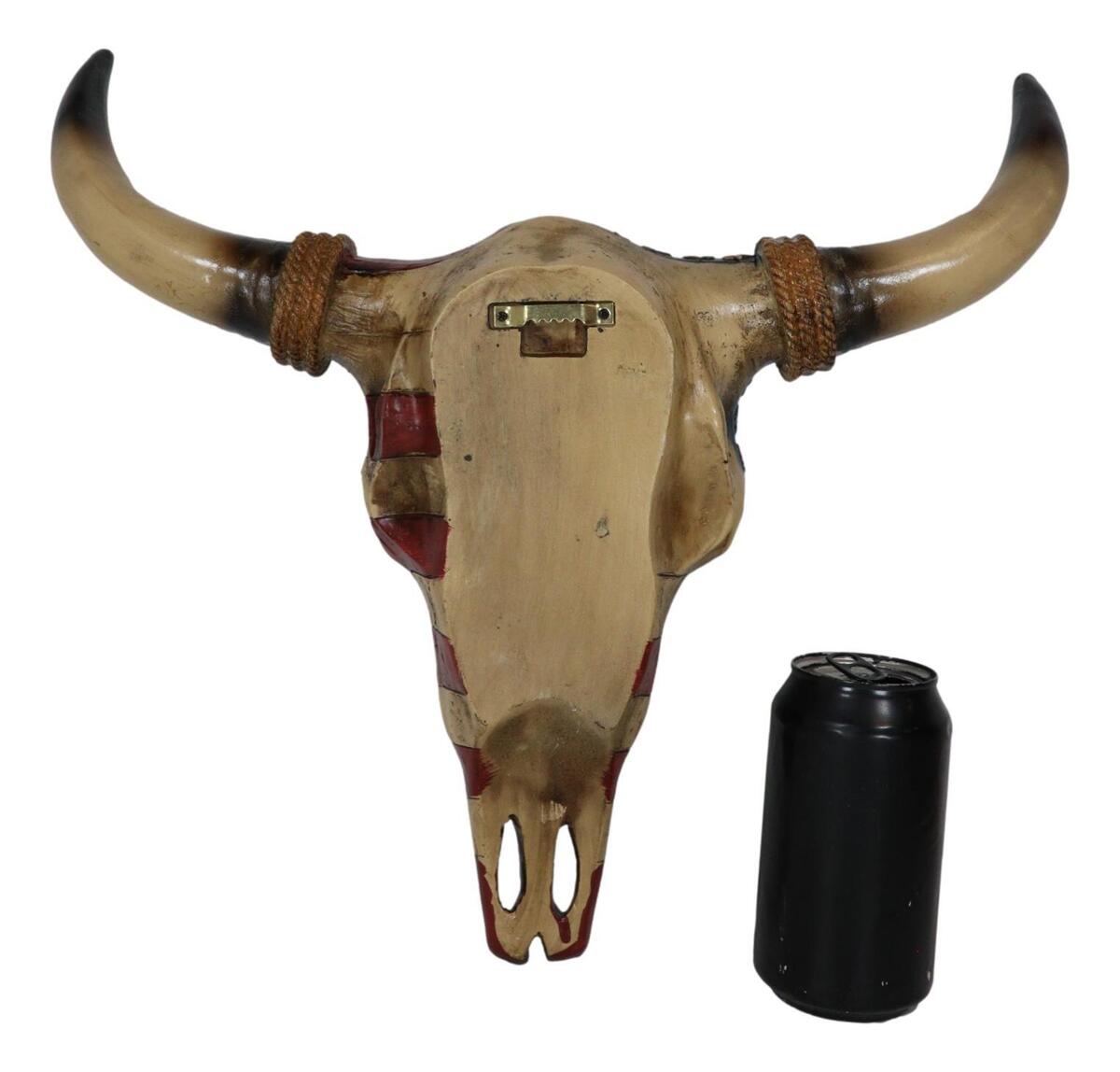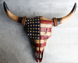 - Rustic Western Patriotic USA American Flag Steer Bison Bull Cow Skull Wall Decor