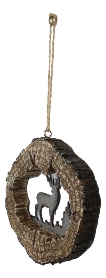 Ebros Rustic Western Stag Deer Faux Wood Log Slice Set of 4 Christmas Tree Ornaments