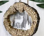 Rustic Western Stag Deer Faux Wood Log Slice Set of 4 Christmas Tree Ornaments