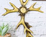 Ebros Rustic Western Stag Elk Deer Bone Antlers Burr Center Wall Cross Cabin Decor