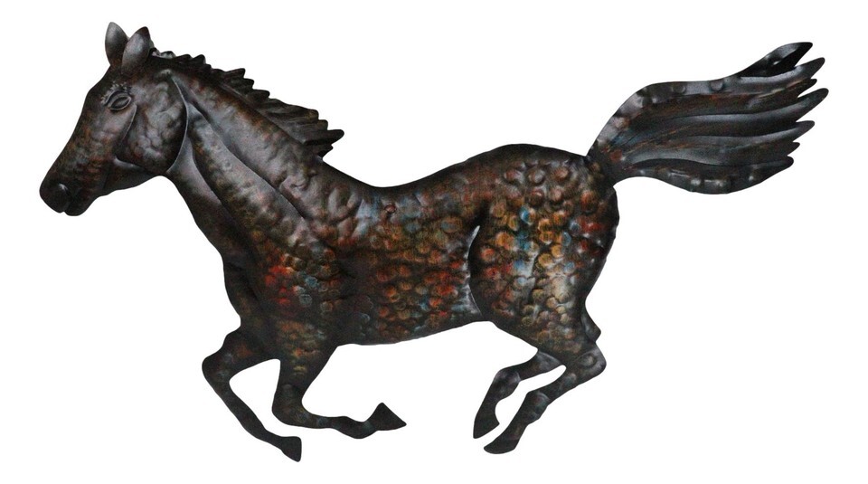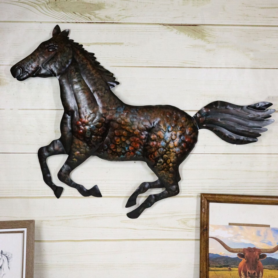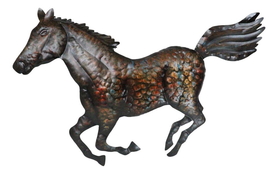 - Rustic Western Wild Running Horse Decorative Metal Wall Sculpture Relief 24"L