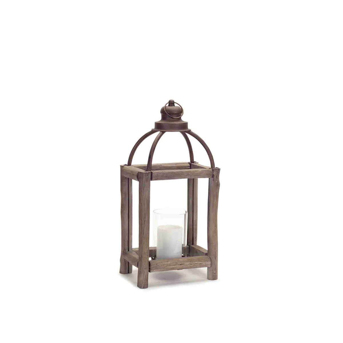 - Rustic Wood Log and Antique Metal Lantern with Glass Hurricane (Set of 2) - 7270