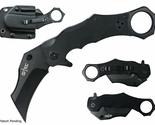 When you carry the 7.5" Tactical Karambit and Quick Release Sheath Open Folding Combat Pocket Knife you'll be the quickest draw on your block. This striking black Karambit style knife has a ring pommel for one finger release and tactical control. This is Not a Spring Assisted Knife.