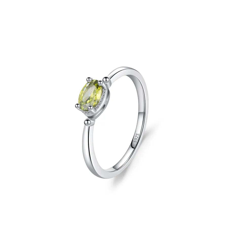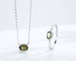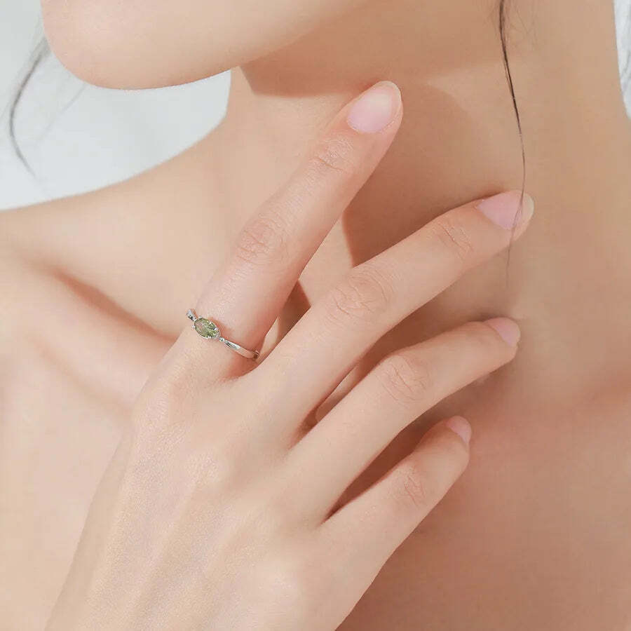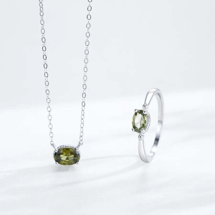 S925 Sterling Silver Fresh Olive Green Oval Ring Necklace Women's High-Grade C