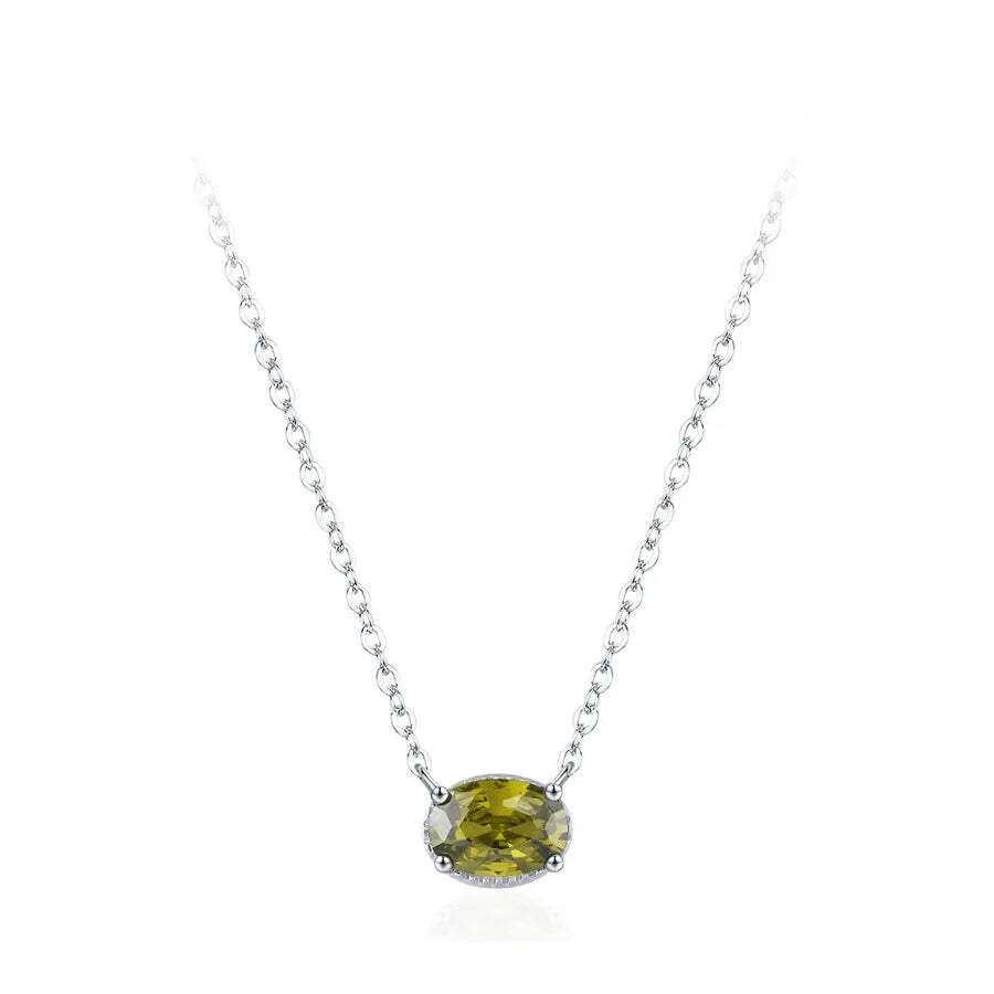 - S925 Sterling Silver Fresh Olive Green Oval Ring Necklace Women's High-Grade C