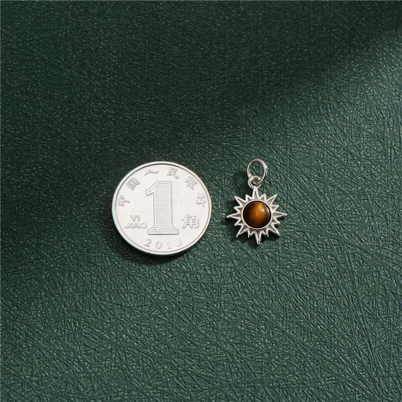 - S925 Sterling Silver Plated Tiger Eye Stone Sun Pendant DIY Crystal Pearl Neckla