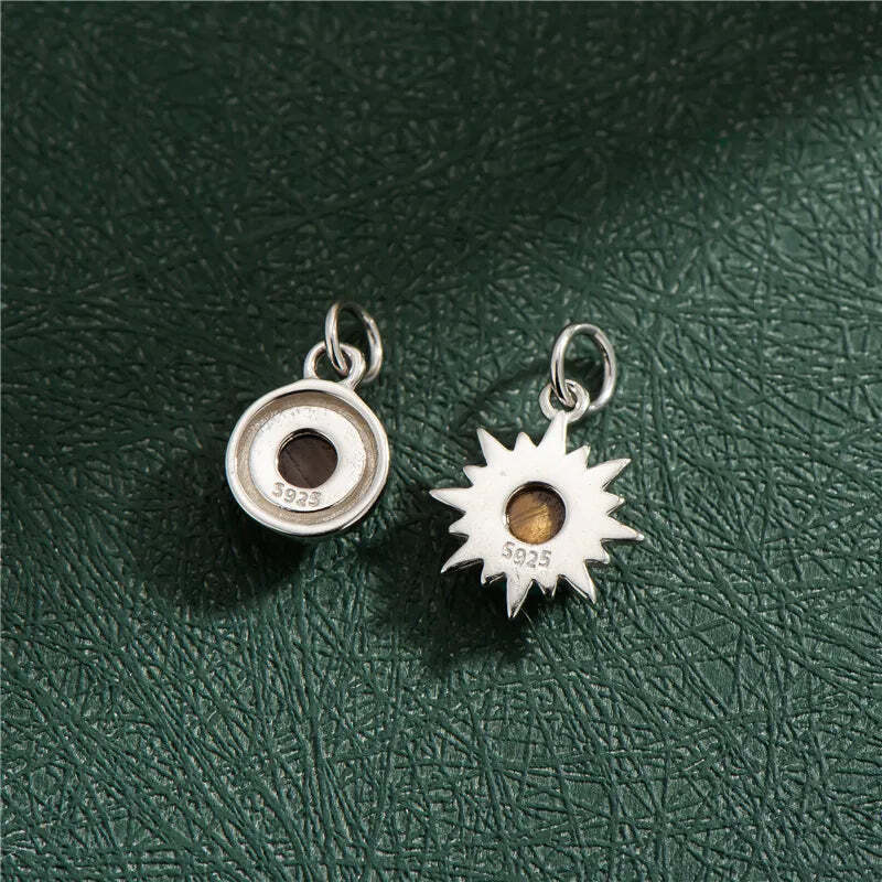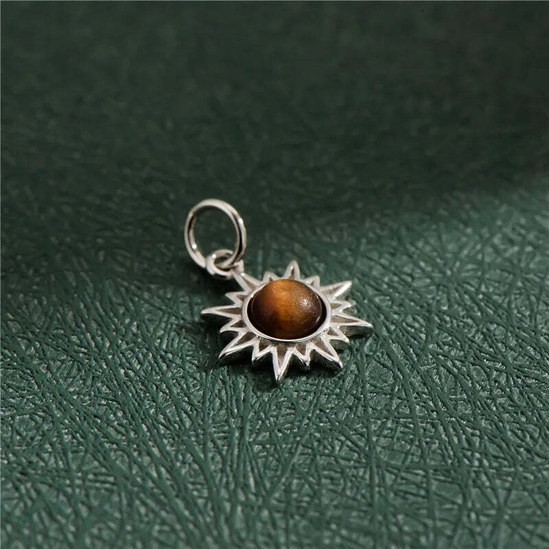 - S925 Sterling Silver Plated Tiger Eye Stone Sun Pendant DIY Crystal Pearl Neckla