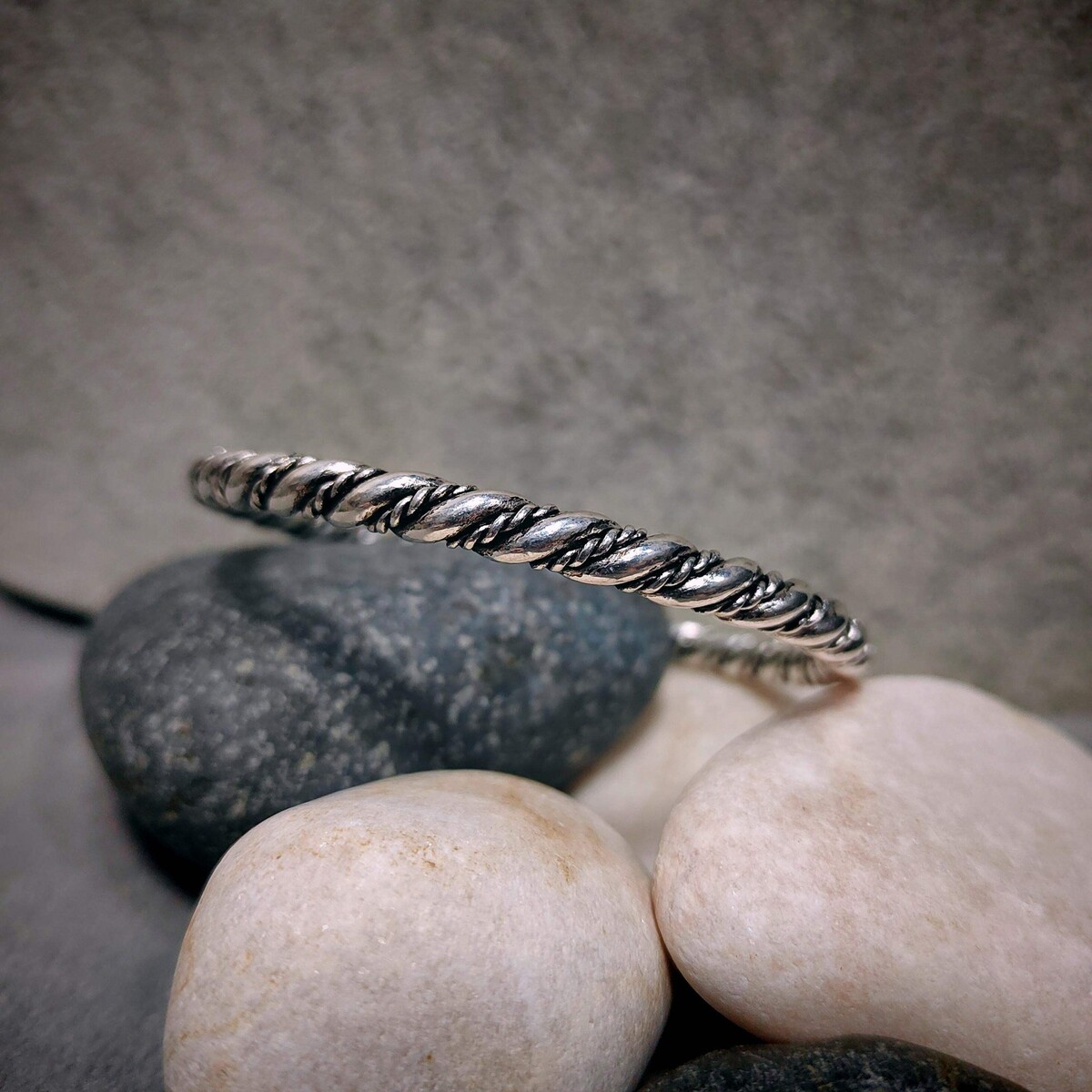 S999 Silver Filled Vermeil Twisted Rope Bangle | Thai Trend Matte Finish | Adjus