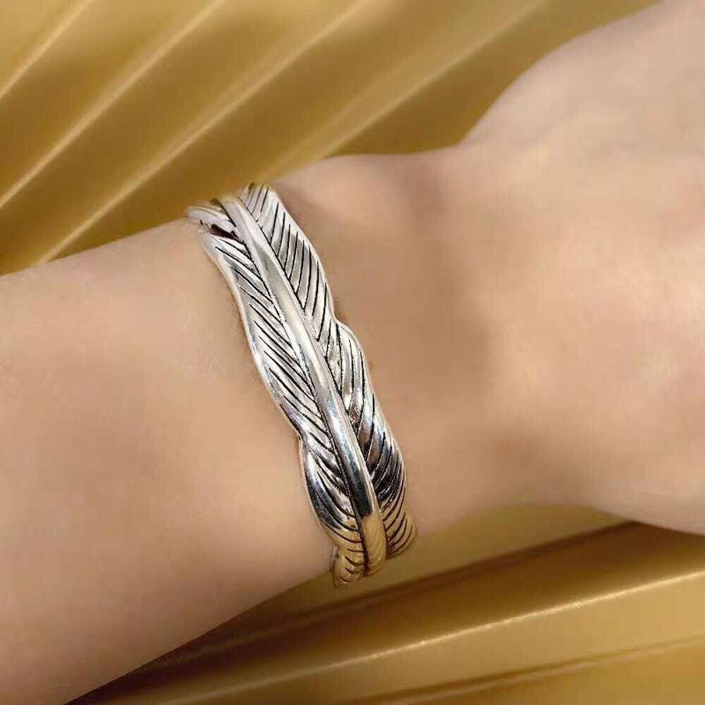 ? S9999 Silver Vermeil Feather Carving BangleThai Vintage Style Symbol of Freedom Protection Unisex Adjustable FitChunky Elegance ? Spiritual Meaning ? Everyday StatementEnhance your jewelry collection with this bold yet elegant feather bangle?crafted in premium S9999 silver-filled vermeil and inspired by Thai vintage artistry. The feather motif symbolizes courage, freedom, and spiritual guidance, making this piece more than fashion?it?s a wearable talisman. ? Product Highlights? Material: S9999 Silver Filled Vermeil on Brass? Weight: Approx. 24.30g? Width: 12.5mm? Fit: Adjustable cuff, recommended for wrists 55?65mm? Design: Feather carving with Thai vintage finish? Style: Chunky, unisex, and versatile ? Symbolism Benefits? ? Freedom Protection: Feather motif represents spiritual guidance and personal strength? ? Durable Shine: Thicker vermeil layer resists tarnish and fading better than ordinary plating? ???? Unisex Style: Bold yet refined?perfect for casual wear, office looks, or special occasions? ? Affordable Luxury: Offers the brilliance of fine silver at a more accessible price point ? Packaging Includes?? Elegant Jewelry Box?? Premium Jewelry Pouch?? Silver Cleaning Cloth?? Protective Zip Lock Bag?? Mystery Gift (special surprise included)?? Free Worldwide Shipping with Tracking ? Care Instructions? Wipe gently with the included silver cloth after each wear? Store in the jewelry pouch or zip lock bag to prevent scratches and dust? Avoid perfumes, hairsprays, harsh chemicals, and swimming? Note: Some Thai-style finishes are intentionally darker for vintage effect?not a defect