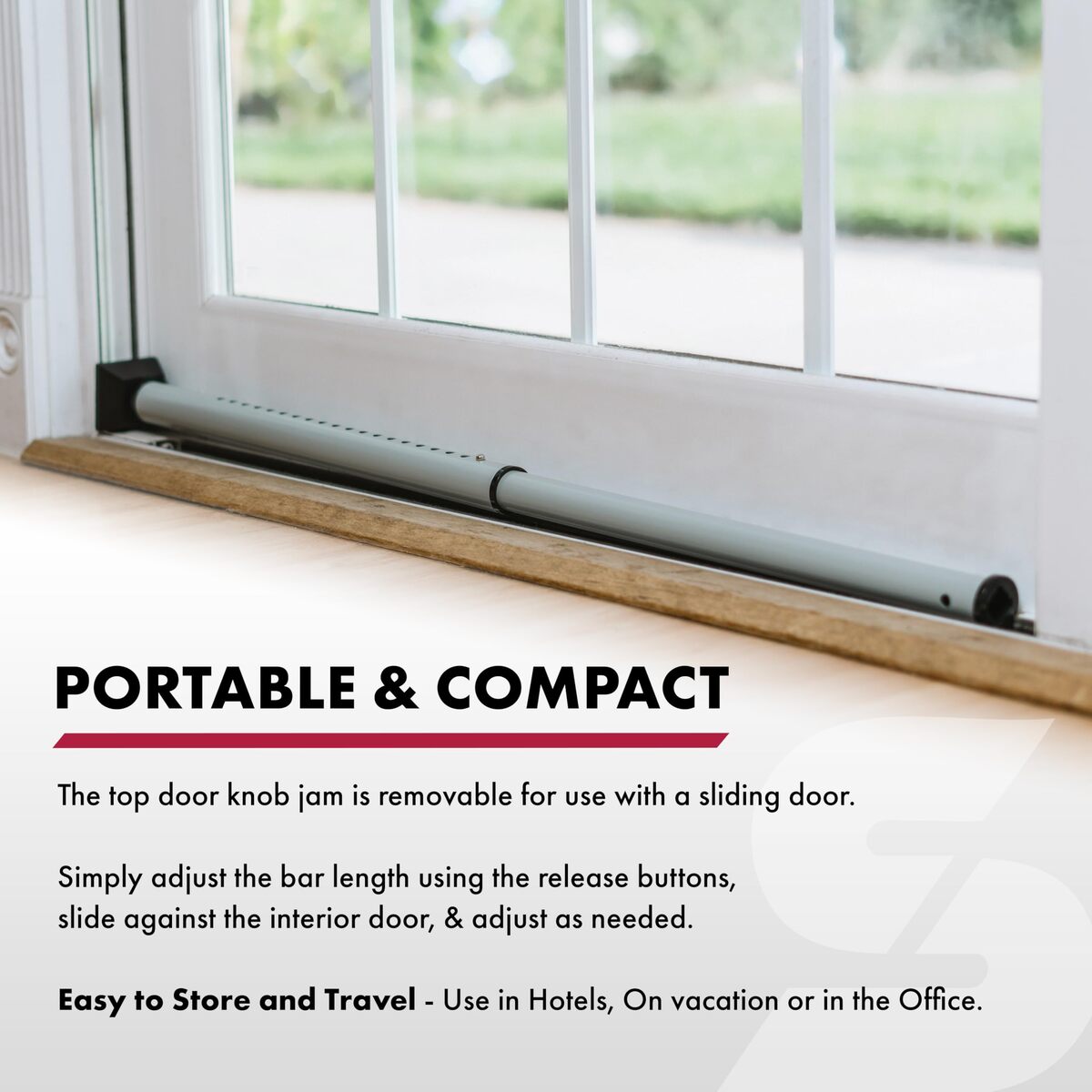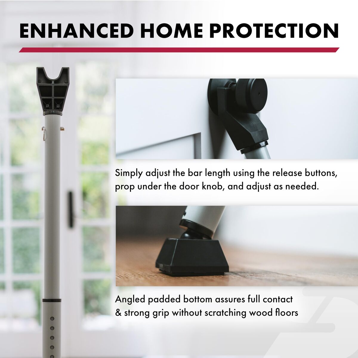 - SABRE Adjustable 2-in-1 Door Security Bar, Door Stop Bar Secures Onto Door Knob,