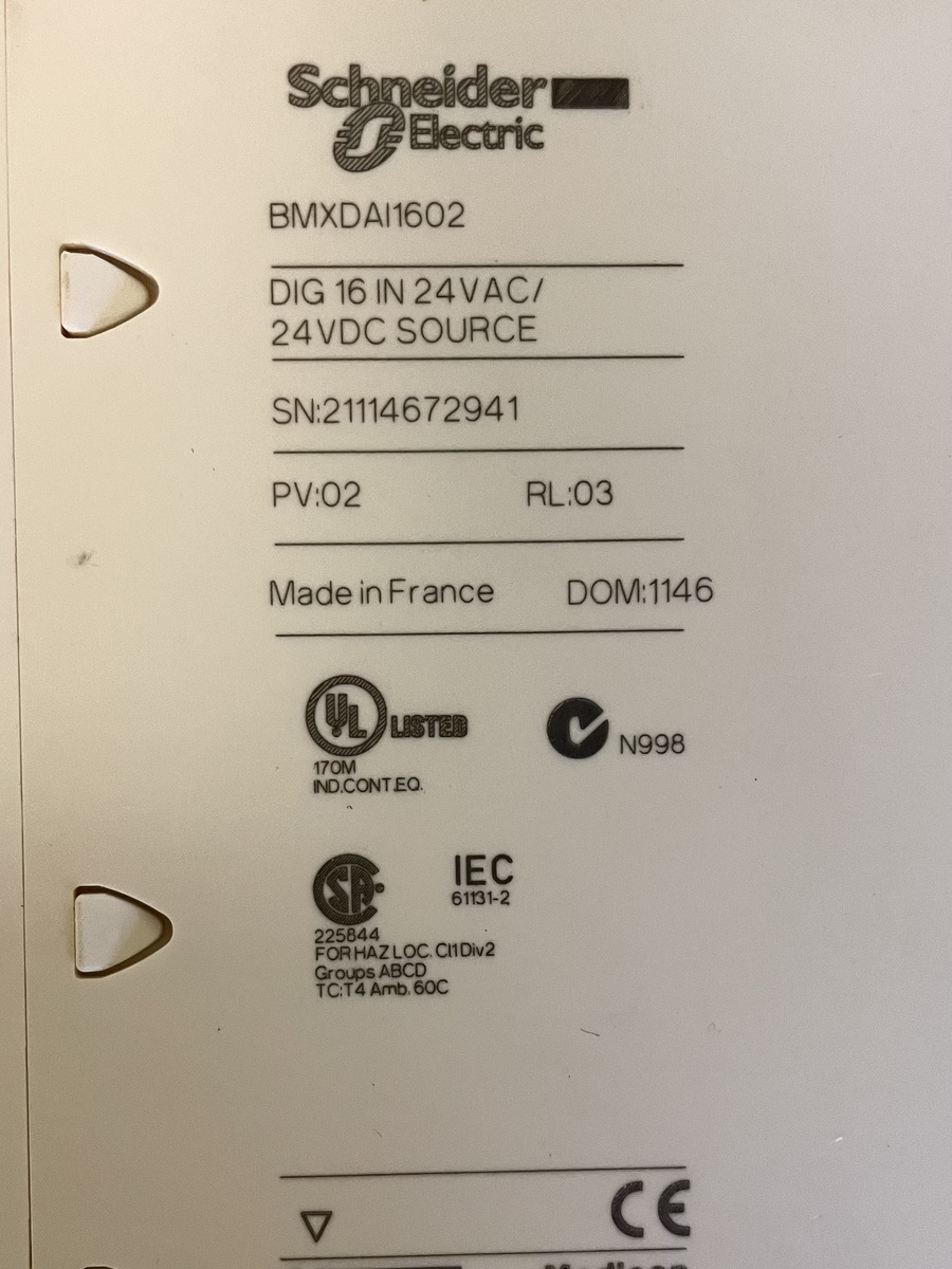 - SCHNEIDER/ MODICON BMXDAI1602 DIG 16 IN 24VAC/DC SOURCE W/BMXFTB12000 SCR.TERM.