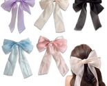 SCORYULE Bow Hair Clips 5PCS Multicolor Tulle Ribbon with Long Tails Girls Women