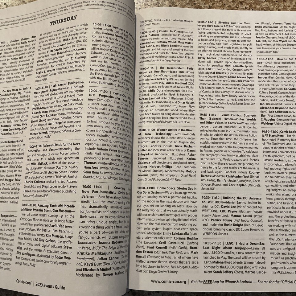 - SDCC 2023 San Diego Comic Con Events Guide Exclusive Schedule Book