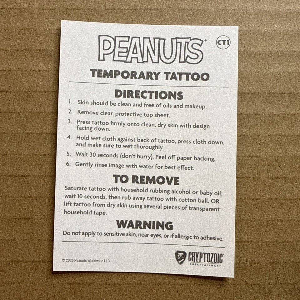 - SDCC 2025 Exclusive Cryptozoic Peanuts Convention Pack 1 Card Temporary Tattoo