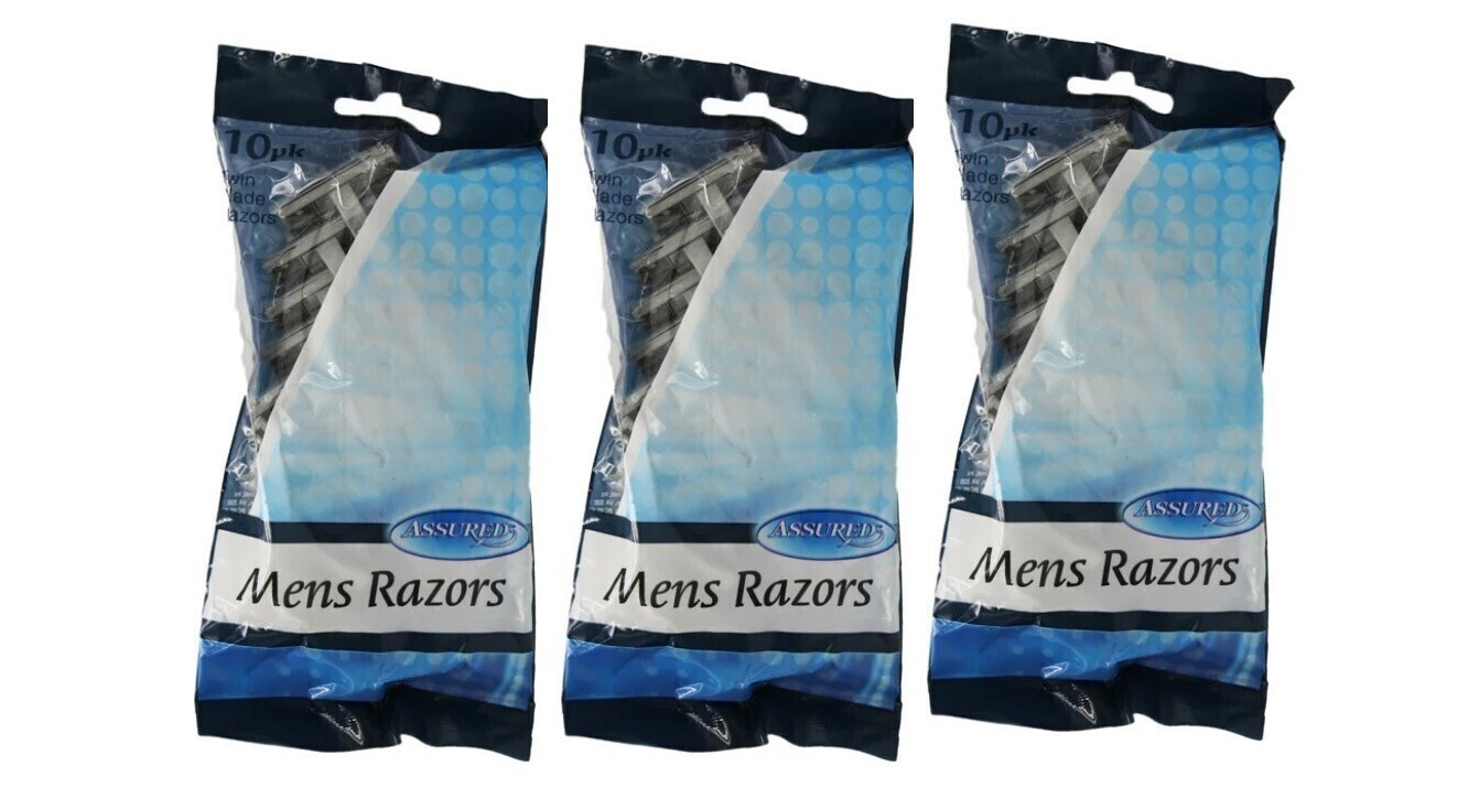 - SET OF 3 Assured Men Twin Double Blade Disposable Razors 10 Count Pack Total 30