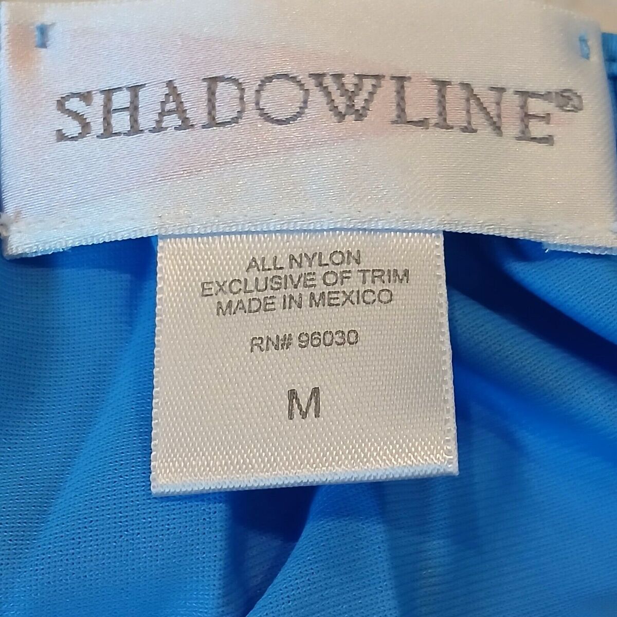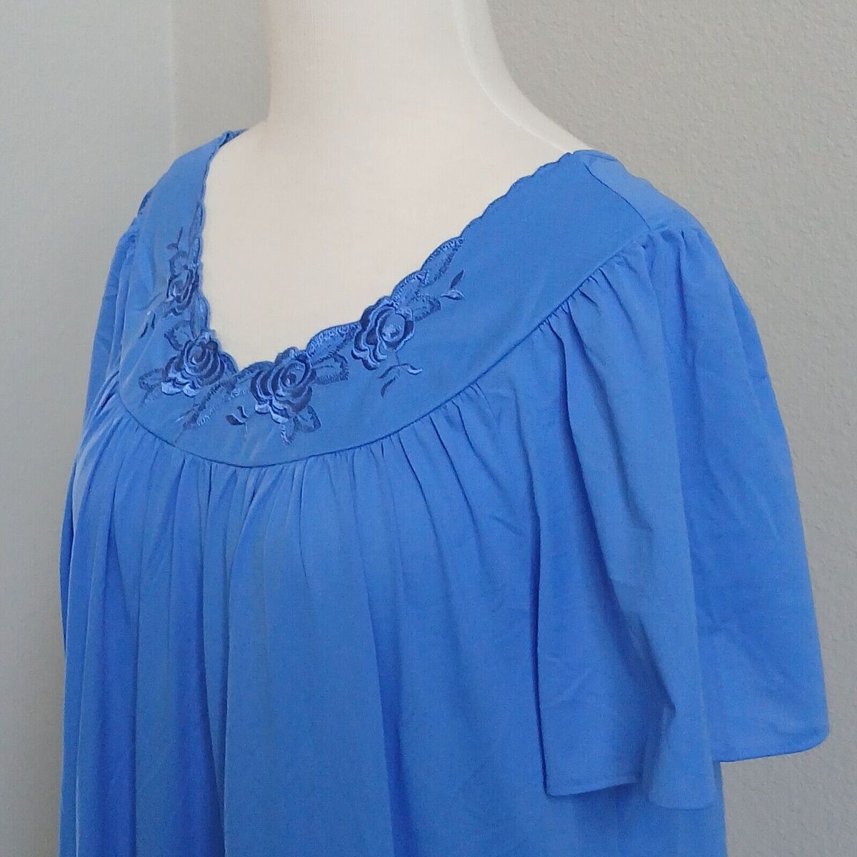 - SHADOWLINE Nightgown Blue Nylon Sheer Short Full Floral Embroidery Lace Medium