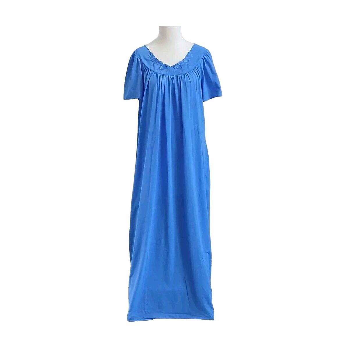Elevate your sleepwear game with this stunning SHADOWLINE nightgown. The blue nylon fabric is adorned with intricate floral embroidery, adding a touch of elegance to your loungewear collection. The short sleeve design and round neck make it perfect for year-round wear, while the lightweight knit fabric ensures maximum comfort.