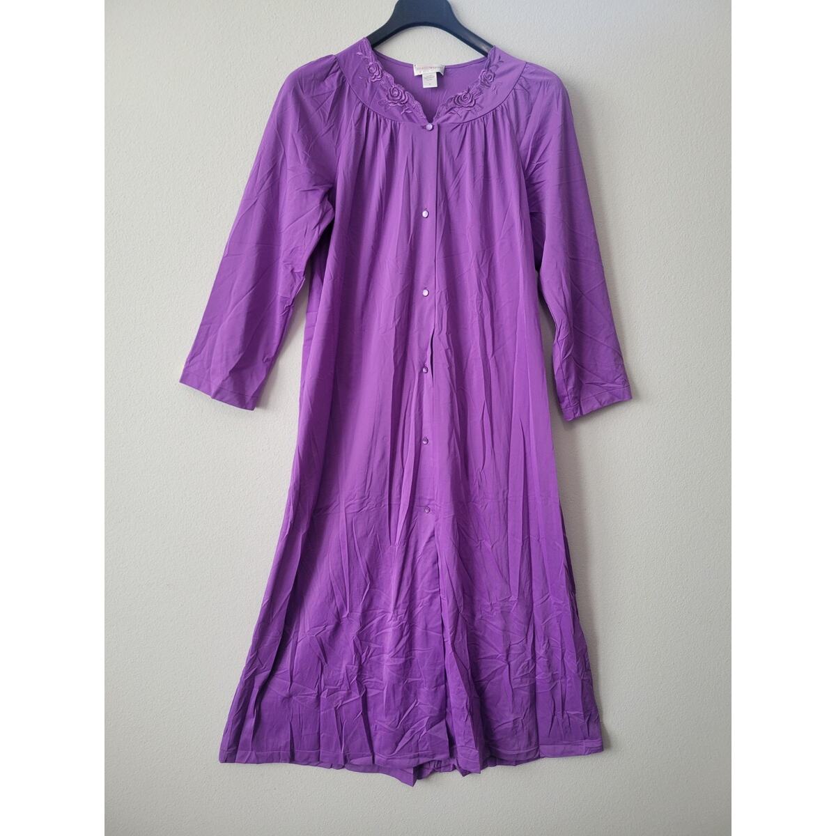 - SHADOWLINE Robe Sz M Women's Nylon Purple Floor Length Long Sleeve Button Front
