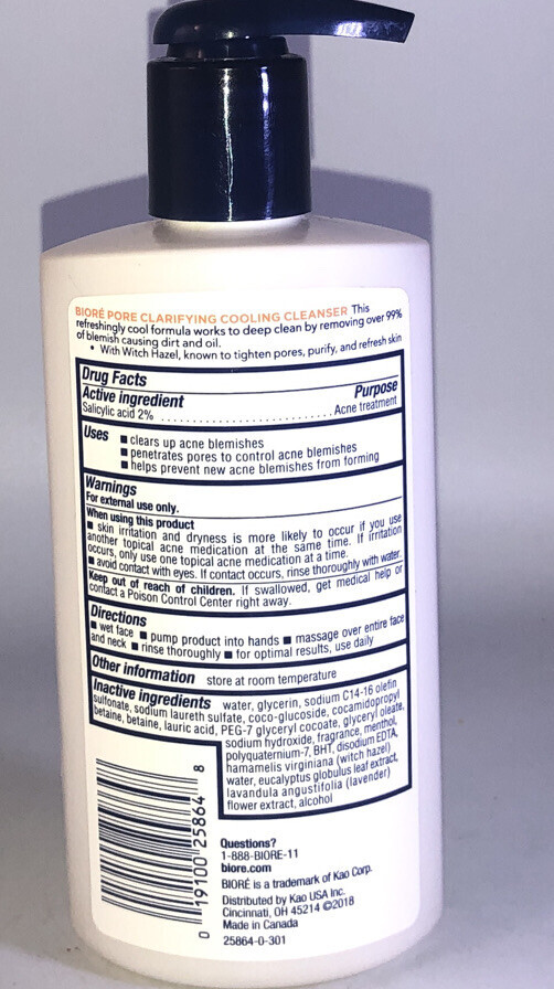 Model: Biore Witch Hazel Pore Clarifying Cooling Cleanser, 1ea 6.77 oz blt
