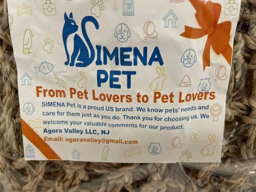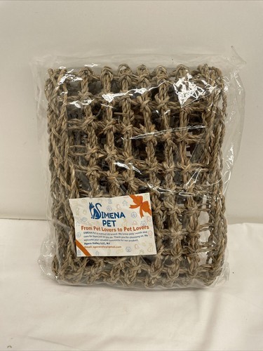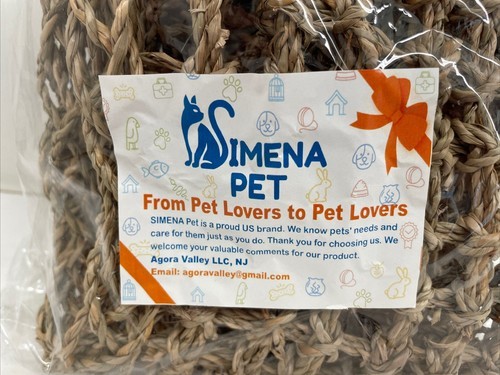 The SIMENA Seagrass Mat is a small-sized bird toy made of natural grass woven into a net hammock. It is designed for birds to climb and play on, providing them with a fun and stimulating environment. The seagrass material is durable and safe for birds to chew on, promoting healthy beak maintenance. The brand, SIMENA, is known for producing high-quality pet supplies, particularly for birds.