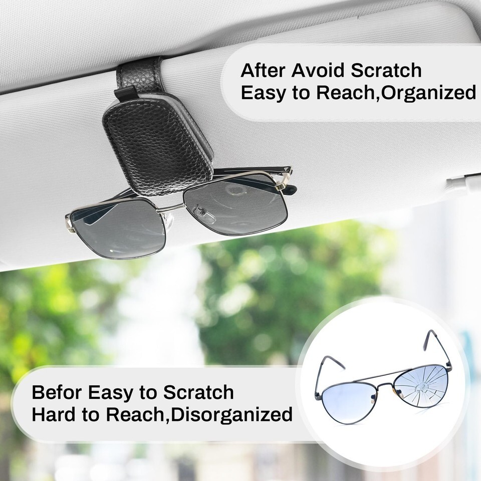 Easy to install: You only need to connect the car sunglasses clip to the sun visor to use it. It is suitable for most car sun visors and is a practical organization storage accessory for cars, jeeps, SUVs, trucks, men, women, and teenagers.