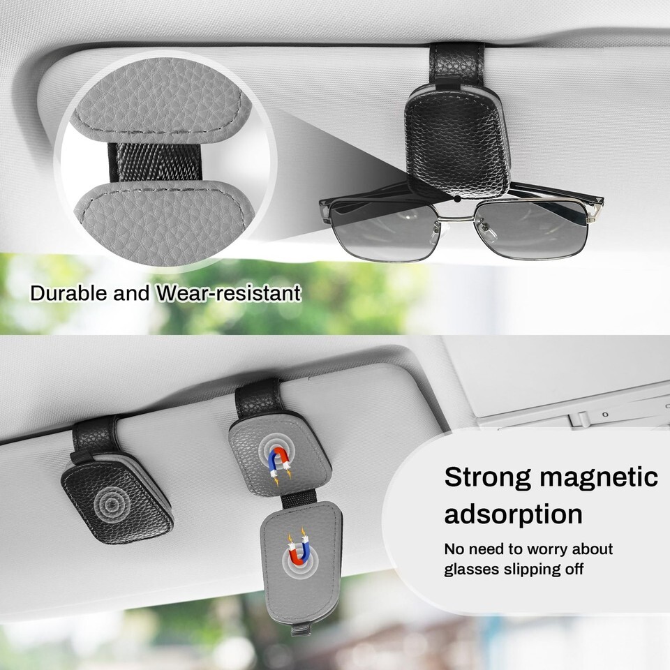 - SINGARO Leather Magnetic Sunglasses Holder Clip Car Sun Visor Black-Gray