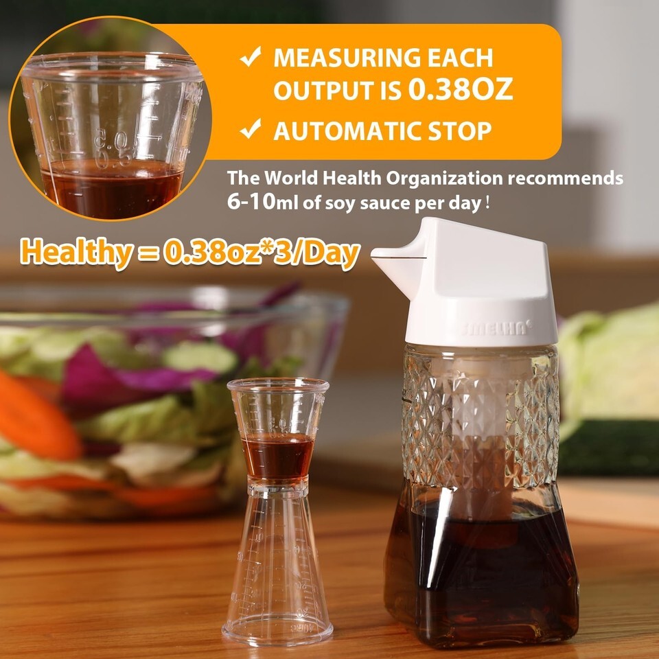 0.38 OZ Healthy Diet:The unique design allows each pour to be 0.38 oz, and after each pour, the oil in the bottle is automatically filled for the next 0.38 oz. Food grade environmental protection material, bottle is made of lead-free glass and is 100% healthy and environmentally friendly, BPA free. No manual measurement, easy and convenient. The internal pipe can be disassembled and used as an ordinary oil bottle, smooth and not quantitative.