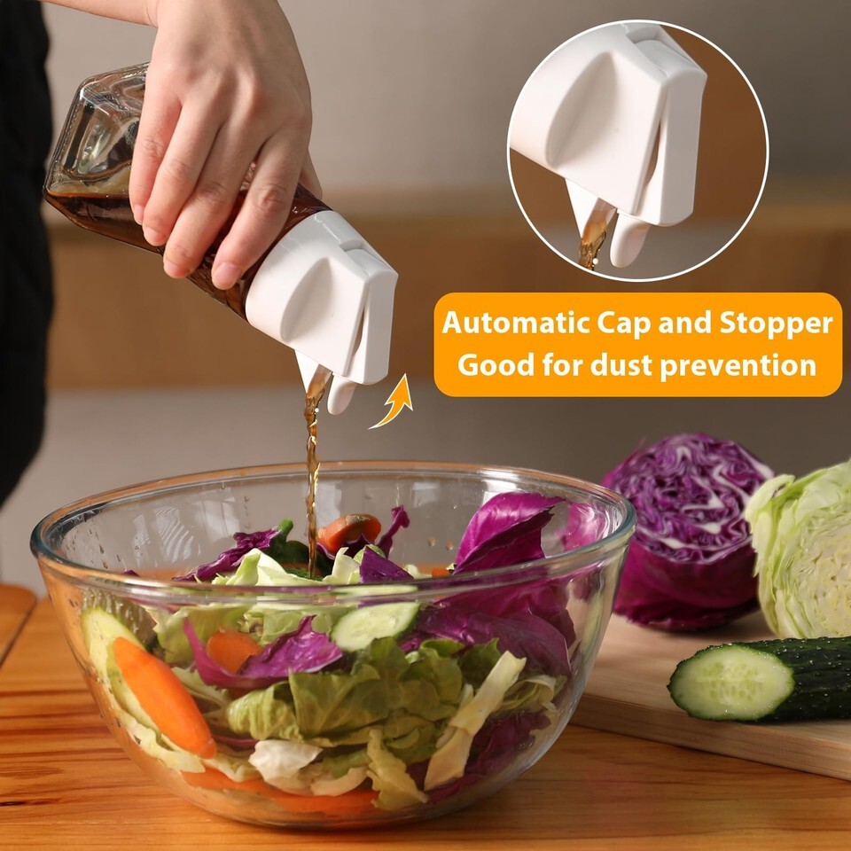 Automatic Lid Flip Design:When you pick up the oil bottle to pour the oil, the lid will automatically open under the action of gravity, put back into the oil bottle, the lid will automatically close, and you can operate with one hand, without manually switching the lid, clean and dustproof.