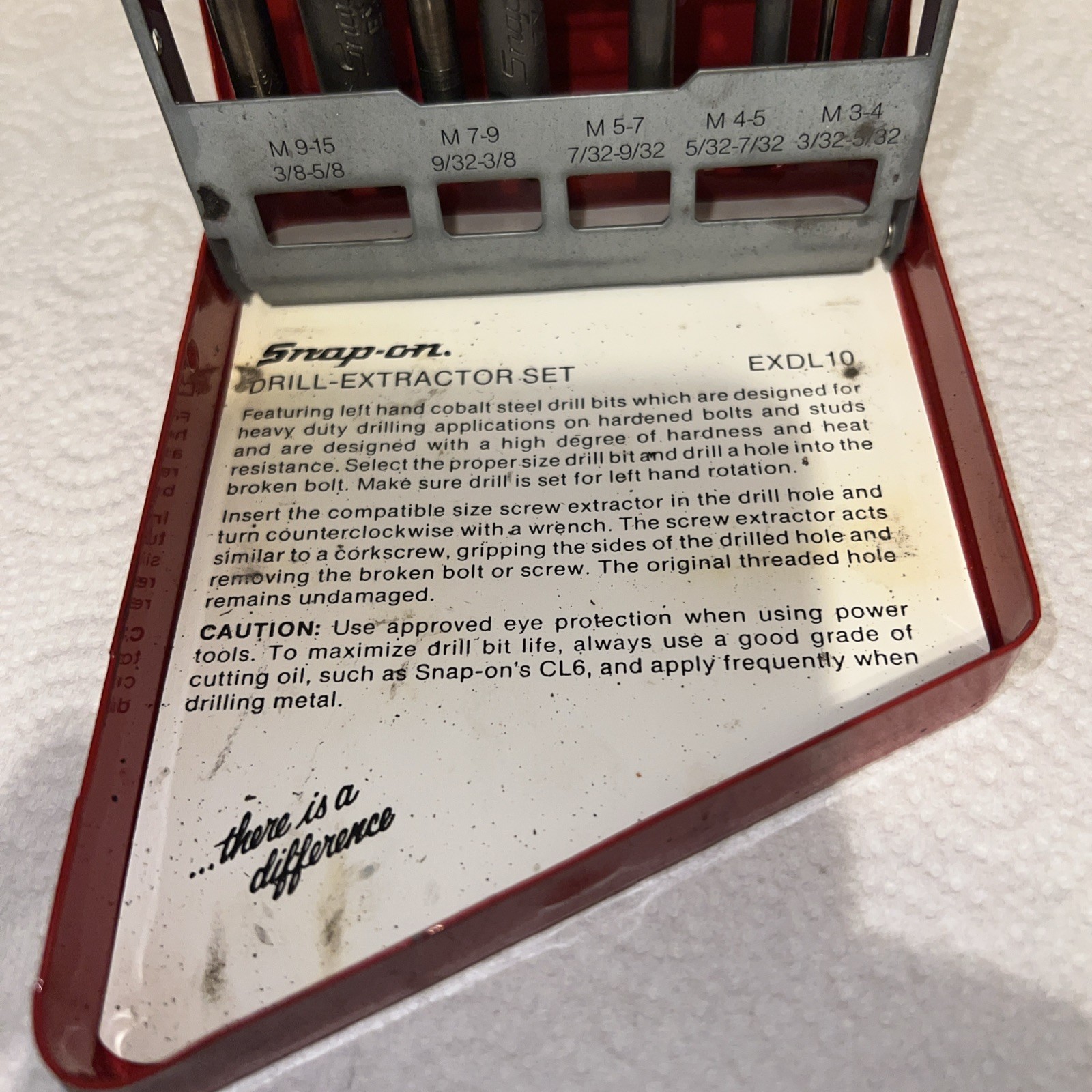 - SNAP ON EXDL10 Left Hand Cobalt Drill &Extractor Set 10pc Not Complete