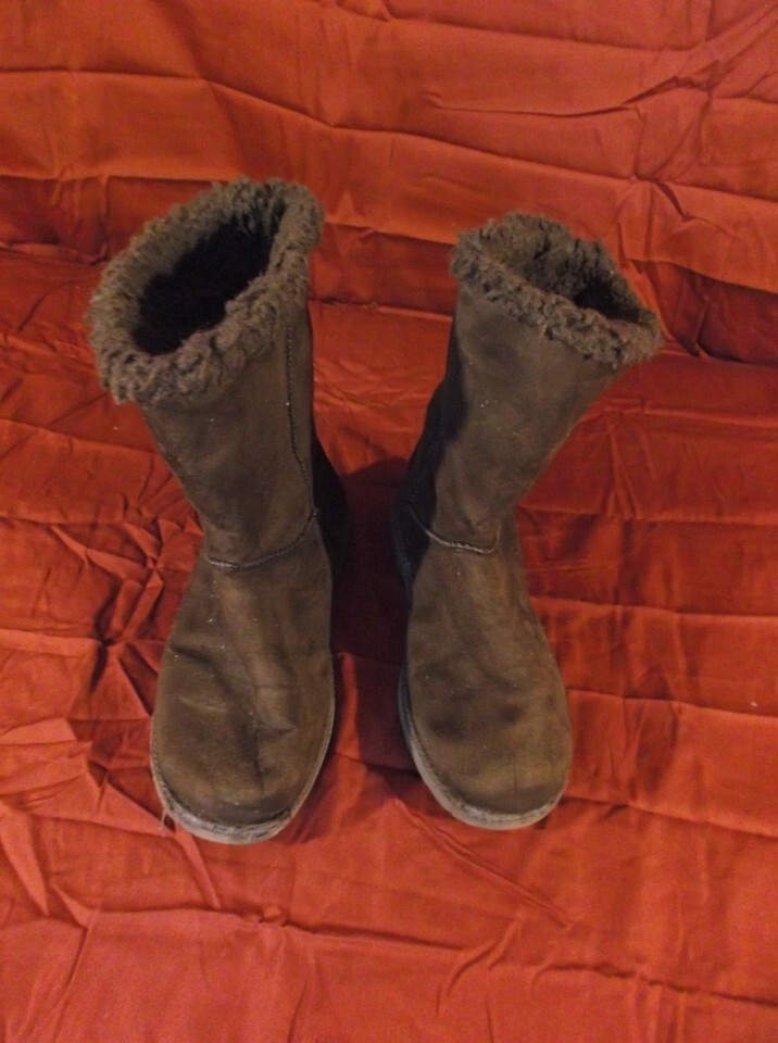 - SO Brown Boots Suede with fur lining Roll Down Womans Ladies Size 8 Good! 5060